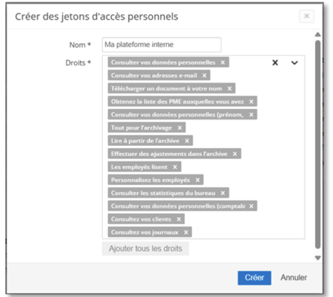 - Nommez le jeton et attribuez-lui les droits nécessaires.